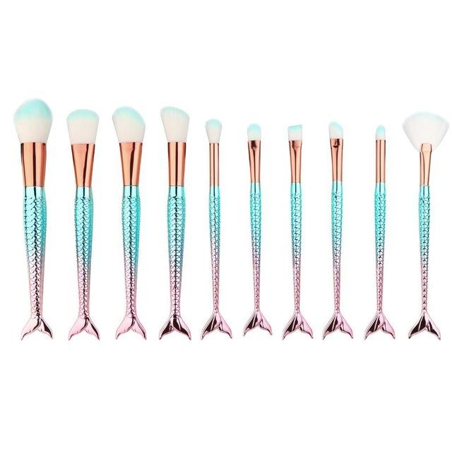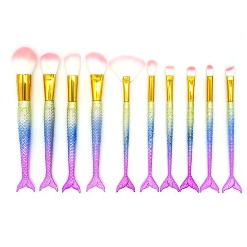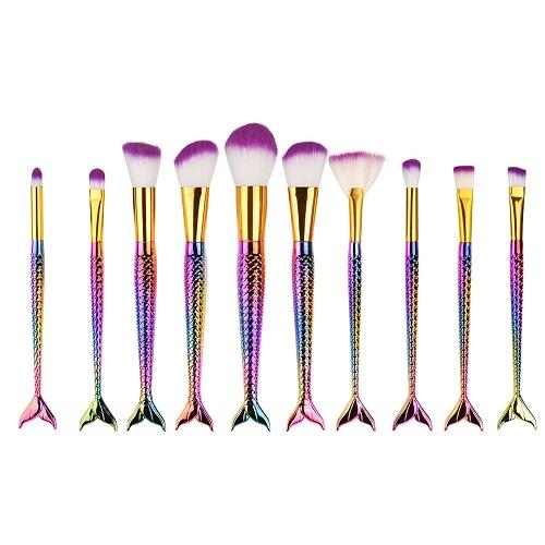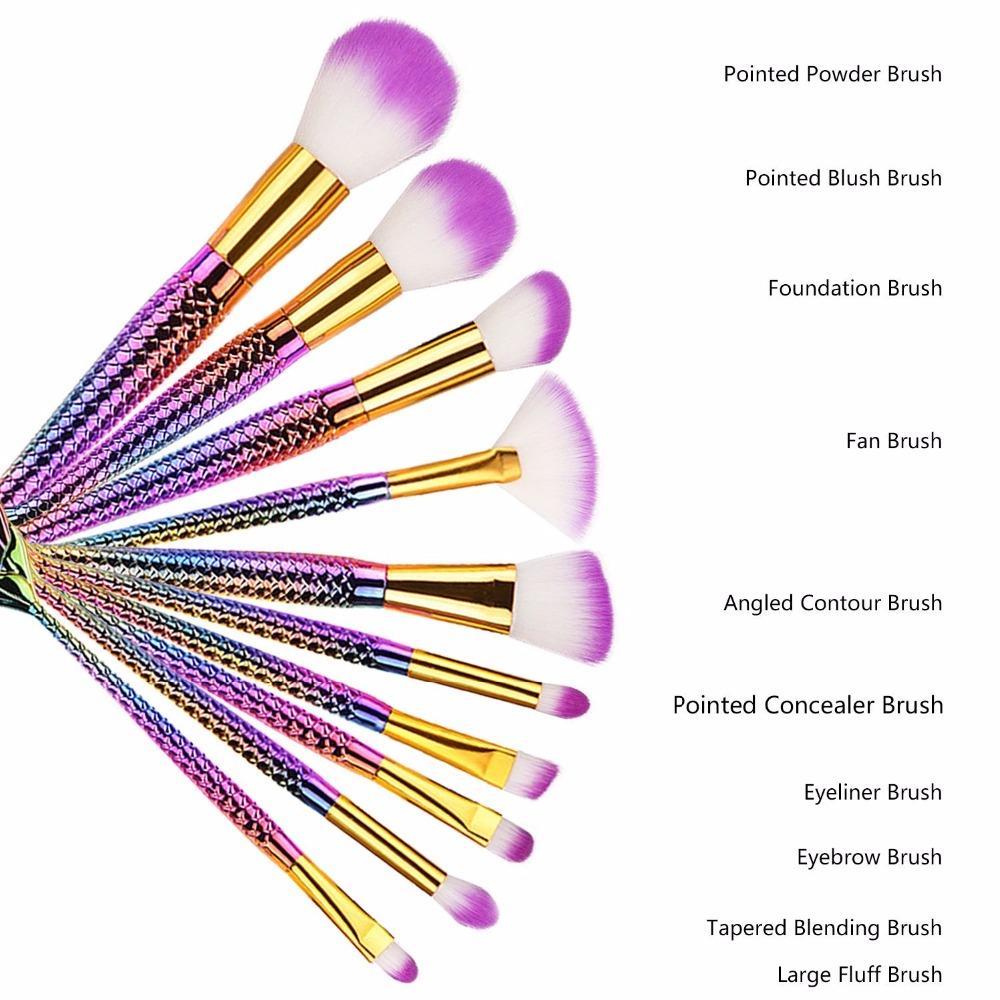 This limited-edition brush set is a perfect starter set as it contains all the brushes you need for a quick and easy makeup application. Each one fits comfortably in the hand, and features on-trend, champagne gold & turquoise mermaid handles. Perfect for placing on the vanity for protecting your brushes while on the go. Enjoy A Full Mermaid Collection Plus A Free Mermaid Contour Brush! Applies Creams & Powders With A Breeze!