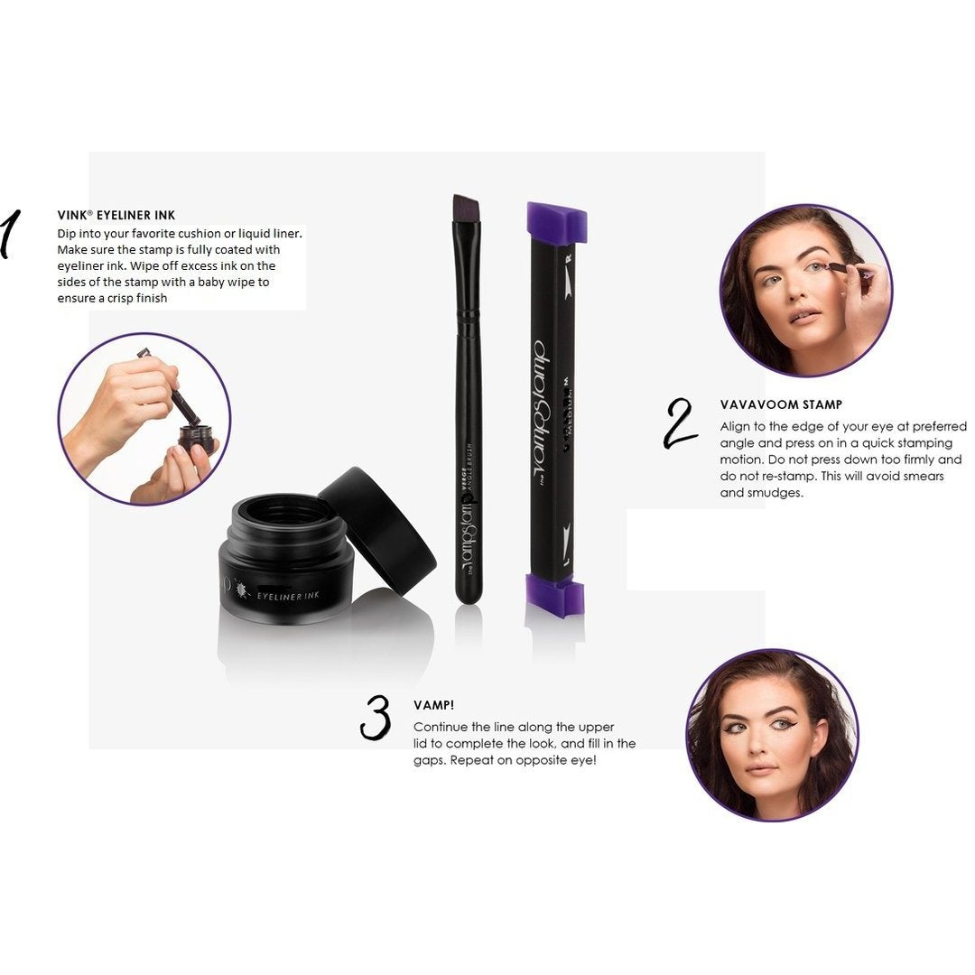 The Vamp Stamp allows for a smooth and perfect winged liner look that will immediately “up” your makeup expertise!